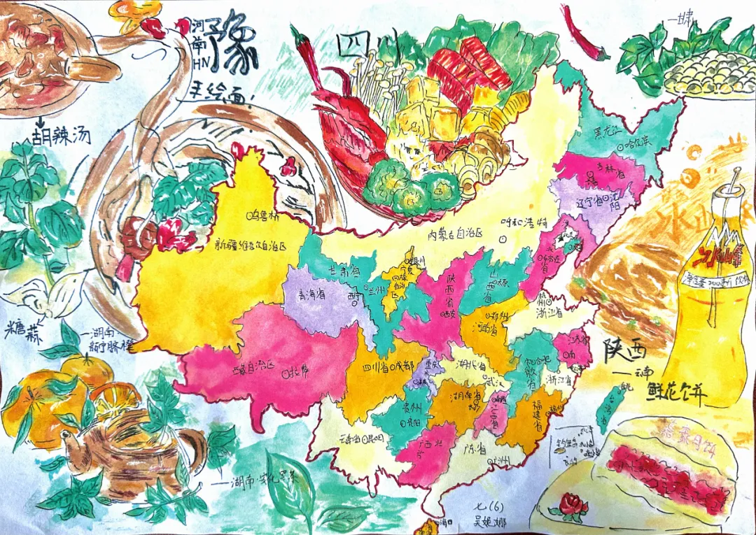 地理书页间,勾勒的是世界的理性轮廓;少年心胸中,奔涌的是山河的感性脉搏。当一纸中国地图不再是冰冷的疆界线,而化为一卷等待描绘的诗意长绢,会迸发出怎样的奇光异彩?近日,我校七年级学子执起创意之笔,将心中对祖国的万千热爱,倾注于中华版图的地图绘画中,让地理知识与家国情怀在方寸画纸之上温暖相拥。让我们跟随镜头一起欣赏同学们的匠心之作吧~